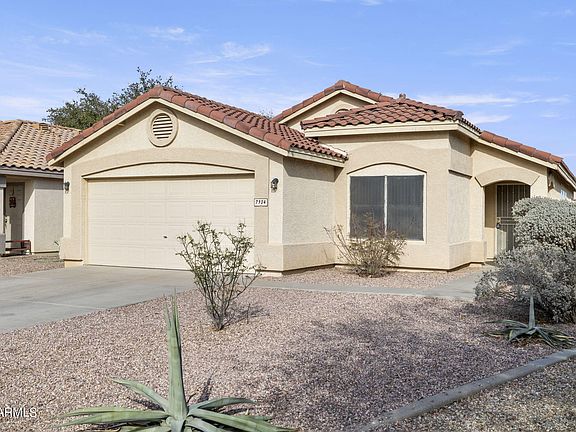Nestled on a cul de sac with only 2 neighbors, this home is priced to sell in the sought after Roundtree Ranch area of Peoria. You'll love the kitchen that opens to both the dining area & the great room. Grey cabinetry with under-cabinet lighting, and plenty of cabinet & counter space. The home has 4 bedrooms, and 2 full baths, with tile in all the right places. The master suite has a full bath, and yes, there are ceiling fans throughout. Dual pane windows throughout. Of course, there's a two car garage. Out back you'll find a covered patio & a pool size lot for you. And,.... if you or friends have kids, or you just like open space, you are just 4 1/2 blocks to the expansive Roundtree Ranch Park with abundant green grass, trees, and a childrens play area. At this price, act quick!