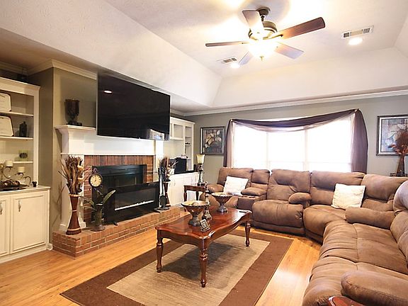 ALL BRICK 4/2 SINGLE STORY HOME ON LARGE LEVEL LOT IN CUL DE SAC. LARGE KITCHEN WITH BREAKFAST BAR THAT OVERLOOKS A SPACIOUS GREAT ROOM...BREAKFAST AREA AND SEPARATE DINING ROOM. TILED FOYER,BATHROOMS AND KITCHEN. HARDWOOD TROUGHOUT HOME REST OF HOME. SPACIOUS MASTER SUITE WITH 2 WALK IN CLOSETS, DOUBLE VANITY AND SEPARATE TUB AND SHOWER. 3 NICE SIZE BEDROOMS AND BATH ON OPPOSITE SIDE OF HOME. SCREENED PORCH AND PATIO WITH A LARGE FLAT BACK YARD FENCED WITH 6 FT PRIVACY FENCE. WOOD BURNING FP