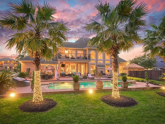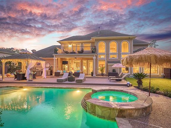 Majestic property offering luxury finishes of high ceilings, arches and art niches, plus an outdoors that is an entertainers dream. Relax in the spa, sit at the pool bistro table, lounge poolside, sit under the covered patio, dine under the pergola or simply enjoy a drink on the second story balcony. Whichever you choose, relaxation is tough to avoid! A private over-sized lot adds to the enjoyment, and the mosquito misting system is hard to beat! Inside provides two formals and study. Wet bar across from formal dining is perfect when entertaining. Upstairs offers 3 large secondary bedrooms, game-room and unfinished Texas basement. Deceptively spacious, home is designed with two story ceilings on either side of a catwalk balcony. A wall of windows complements the living room ensuring ample natural lighting and optimal views of the pool area. Recently remodeled with new granite throughout, double pane windows, pool resurface, painted patio and carpeting. Pre-wired for a generator. 2019-05-22