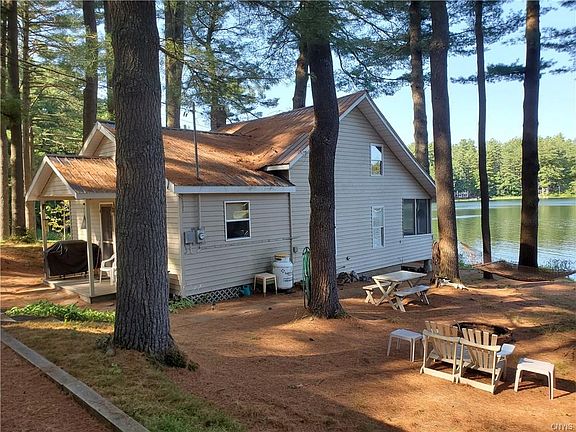 Here's the waterfront property you have been looking for. Affordably priced cabin with sleeping space for at least 10 people and over 90' frontage on Pleasant Lake in Brantingham. New kitchen, bath and laundry area. 2 Car detached garage. Home comes fully furnished so you can move right in and start enjoying all the amenities of Brantingham - boating, swimming, golfing, snowmobiling and ATV. Cabin is heated with propane fireplace and space heaters.
