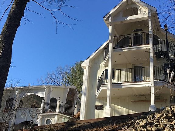 GORGEOUS, BREATHTAKING, RELAXING3 Lots 160 FT of prime waterfront! Party deck, electric boat lift, 2 boat docks, storage for toys! Classy home catches your eye from the water & road. This uniquely Spanish inspired home boasts a 36 Ft enclosed veranda with see-thru stone fireplace that also graces the living rm/kitchen/eating area. Below sunroom an equally expansive deck for entertainment and more views. BUT WAIT a 3 STORY CASTLE? Oversized garage (23x30) with electric and workshop AND storage AND a PRIVATE RETREAT (15x21) with amazing views. A study, game rm, artist retreat, TV sleepover area?? Multiple decks all stained this summer, New roof, HVAC 2018, firepit or wall safe Walkout finished with bath could be home of your dreams.