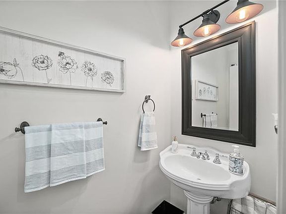 Amazing location convenient to GA400 and Hwy 141, within walking distance of schools, restaurants and shops. This renovated home with open floor plan has hardwoods throughout, beautiful hardwood staircase, updated kitchen with quartz counters, vent-hood, newer stainless-steel appliances, generous walk-in pantry, California closet in master, loft upstairs, laundry with wash-basin upstairs, lots of storage (especially in the garage shelving system), alarm system installed, and each bedroom has its own private bathroom. Beautiful covered porch and back patio, perfect for entertaining. The property has a serene landscaped backyard with water feature, creek behind the property visible in the winter. HOA maintains the yard, neighborhood has a clubhouse, playground and pool. Friendly neighborhood.
