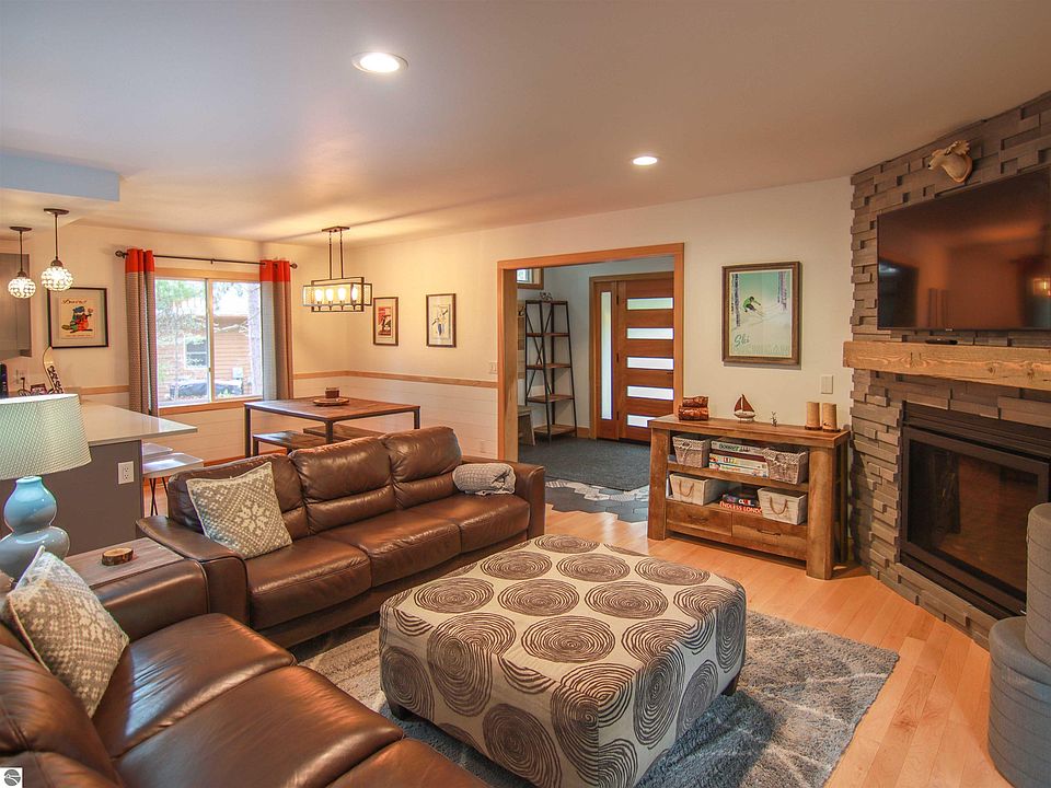 This beautifully updated, two-story chalet offers as much sleeping room as it does charm. Located within The Club subdivision at Crystal Mountain, this 4BR/2BA residence is within walking distance to Crystal’s many amenities. The open floor plan of the main floor offers the perfect indoor family gathering space, while the expansive decking outside provides a secluded in-the-woods feeling. The three bedrooms upstairs give the kids plenty of “their space” room for hanging out. The cul-de-sac lot features a fire pit and tall pine trees that allow just the right amount of light in. Main floor master, spectacular full bath and adjacent laundry room is so convenient. In the kitchen, you’ll love the extensive hard-surface countertops, breakfast bar and comfortable dining space. Crystal Mountain’s Club neighborhood features underground utilities and thoughtful restrictions. Association allows for short- and long-term rentals, giving you the potential for rental income when you’re not enjoying your up-north home. Crystal Mountain FOUR SEASONS CLUB membership options available.