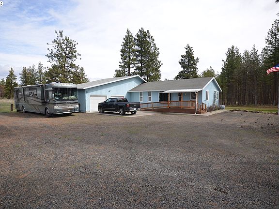 This 2 bed, 2 bath 1,364 sqft Ranchette is nestled in amongst pine trees & is minutes to fishing, golfing, & the national forest. It boasts a master suite, attached 2 car garage, RV Parking w/hookups, & 2 sheds with plenty of parking for trailers, toys, & the RV. It is fully fenced & cross-fenced w/a pasture. Underground sprinklers water the big backyard & has a nice deck for BBQs. The lot may be dividable & only 40 min to The Dalles.