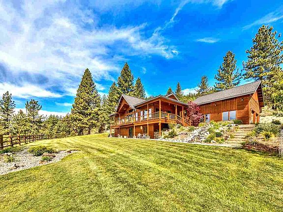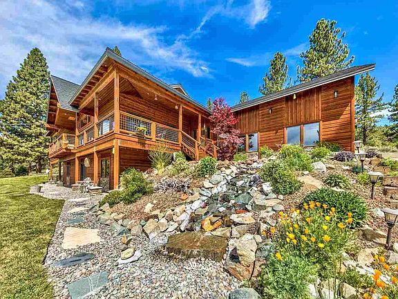 NO HOA! Stunning mountain home situated on 5 acres with panoramic views that will take your breath away! This home is ideal for both grand entertaining or for enjoying complete solitude. The inviting entry showcases a custom water feature surrounded by perennial flowers and bordered by a rock entry path. The entire main level has floor to ceiling windows showcasing the views which can be enjoyed from the gourmet kitchen, dining rm, living rm with wood beam ceilings and fireplace and from the master bedroom with walk in closet, en suite bathroom/laundry. The main level also provides a large foyer/mudroom, a half bath for guests, and a flex room that is currently being used as an office. The lower level provides two more bedrooms (one with en suite bathroom) a spacious game/rec room and additional room for storage. For an added bonus, the property also features an attached oversized two car garage, a detached wine cellar, a seasonal ice rink, fruit trees, fenced area for pets, etc.. This location is minutes from Grizzly Ranch Golf Course, Lake Davis and less than an hour from Reno/Truckee. Please contact us for more details about this exquisite property.