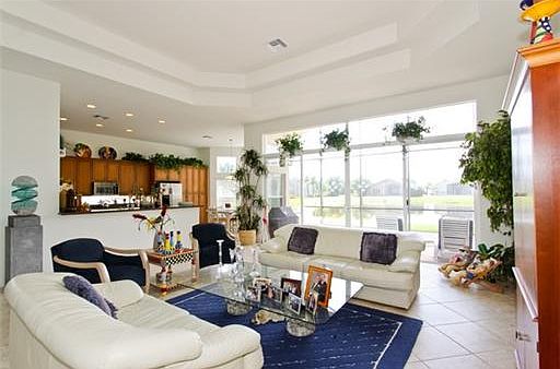 Bright cheerful popular great room house with large rooms and high ceilings. It is perfectly situated with the best lake view. Enjoy the tropical breeze on the huge screened patio. The impressive entry with a wrought iron gate and double doors open into a ready to move in great room house with a wide lakefront view and huge screened patio. There is a ground wire on the patio for a future pool or hottub. There are numerous outstanding features not to be missed throughout this special home. The gourmet kitchen has been upgraded with wood cabinets stainless GE appliances extended snack bar granite countertops upper and lower lazy-susan cabinets under cabinet lighting and a fixed-glass showcase window. A double water reverse osmosis filtration system has been installed. The bathroom floors have non-skid tile and the mirrors have been raised to the ceiling and beveled. The master bedroom has 2 huge walk-in closets and a relaxing bay window sitting area. The guest bedroom suite has a connecting private bathroom. The driveway and walkway have been widened for your convenience. All measurements are deemed accurate but not guaranteed.