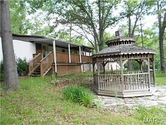 Well cared for 14x80, 3 bedroom, 2 full baths mobile with newer metal roof & newer thermo windows. On 5.13 acres with a covered front porch that is 60x7. The back deck is also covered. Water garden & flower beds in the front & a large gazebo in back add a relaxing country feel to the property. A quiant log cabin in back has an old wood cook stove & would make a great craft or play room. The detached, oversized 2 car garage has sky lights & 220 wiring. The seller is leaving the fridge, stove, washer & dryer & microwave.