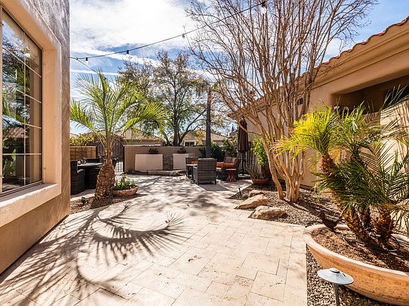 Located on a stunning golf course in the serene atmosphere of Scottsdale, Arizona, this luxurious 2,542-square-foot home offers an exceptional blend of comfort and elegance. This two-story residence features two spacious master bedrooms, each with a king-size bed, walk in closet, and a lavish en-suite bathroom complete with a walk-in shower, separate tub, and double sinks. The upstairs suite has a computer desk, and a cozy sitting area with a smart TV and a gas fireplace that adds a touch of warmth to the space. The home's architecture emphasizes spaciousness with high ceilings and premium finishes like porcelain tile and plush carpeting, enhancing the modern aesthetics. The living room, designed for relaxation and entertaining, includes comfortable seating, and a wall-mounted smart TV. A state-of-the-art Sonos Sound system and comprehensive security system underscore the home's modern amenities. The kitchen is a culinary delight with an open floor plan, granite countertops, a breakfast bar with bar stools, and upgraded appliances, all inviting for cooking. Additional home comforts include a half bathroom on the lower level, a convenient laundry room, and a loft that can be adapted to your needs. Outdoor living is just as grand with a front and back patio, a balcony, BBQ grill, fire tables, front courtyard with water feature, and outdoor heaters perfect for year-round enjoyment. The community pool, hot tub and golf course further enhance this outdoor oasis. For those who need to commute or explore, the property is under a mile from shopping venues, less than two miles from the nearest hospital, not to mention the proximity to delightful restaurants and stores. The home also includes a two-car garage, driveway parking, and the bonus use of two bicycles, making local travel and leisure activities effortlessly accessible. Utilities are included, and a flexible monthly cap is negotiable by season, ensuring this upscale living experience perfectly caters to your comfort and convenience needs. Dogs are welcome, making it a complete package for family living. Enjoy the ideal of Scottsdale luxury living in this meticulously designed home. Book now!