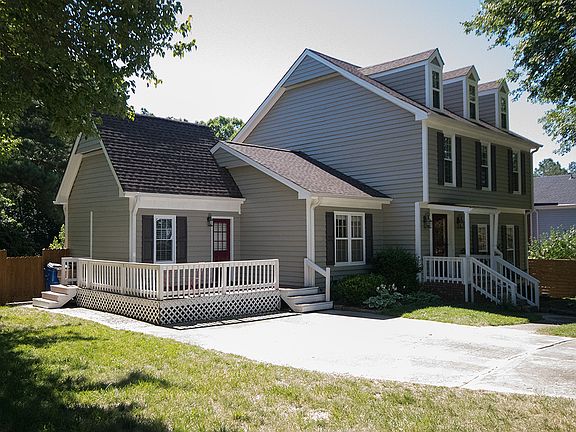Curb appeal is HERE! Relax and entertain on the HUGE deck in rear and side porch! Tons of updates include granite kitchen counter tops, stainless steel appliances, smooth ceilings, new roof 2015, new deck, new light and plumbing fixtures, tile baths and new bath vanities, masonry fireplace . Heart of pine floors, new gutters, awesome corner of cul-de-sac lot. Patio with fire-pit, garden and a huge walk-in attic storage.