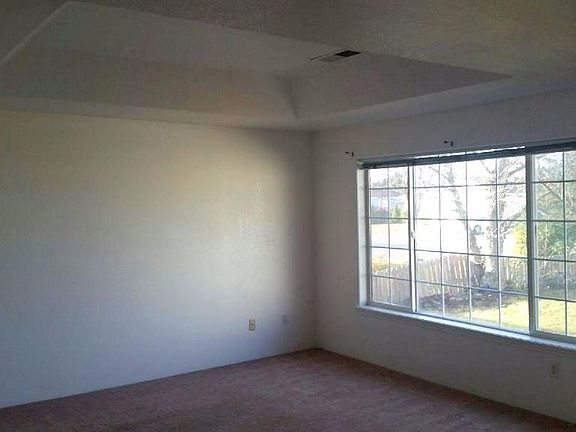 3 bedroom 2 bath home with lots of light. Open floor plan with large kitchen and plenty of storage. Sliding doors off dining area to covered patio. In ground sprinklers and small shed in backyard.