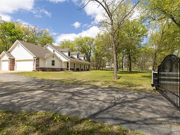 Welcoming home with gracious front porch, sits on a picturesque, secluded 2.33 acres. A country setting with quick access to Tulsa Hills, Jenks landing, Turkey Mt., Hwy 75, I-44 & Creek Turnpike in Jenks school district. The 3 bd/3 bth home offers a game room upstairs, 3 car garage, brand new living area flooring and electric security entrance. Sit out on the back deck and watch the sunset.