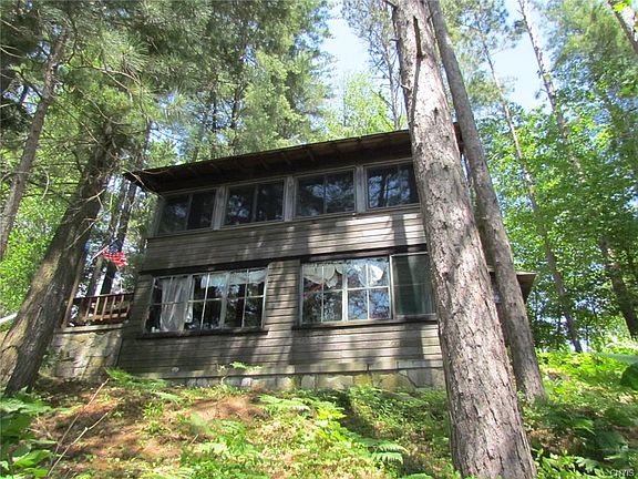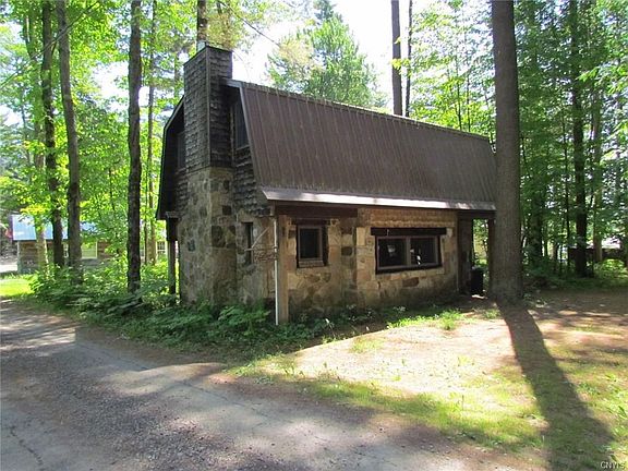 Adirondack cabin on Brantingham Lake with 66' water frontage. Home features a stone fireplace in great room, enclosed porch with updated windows overlooking the lake and newer addition housing a bedroom and full bath. Walk-in basement has an enclosed porch which could be used for sleeping quarters and wood stove for additional heat. In addition there is a separate modern guest house with one bedroom, bath, kitchen/living room. Across the road is a two car garage for storage. Most furnishings are included. Patio/barbecue area.