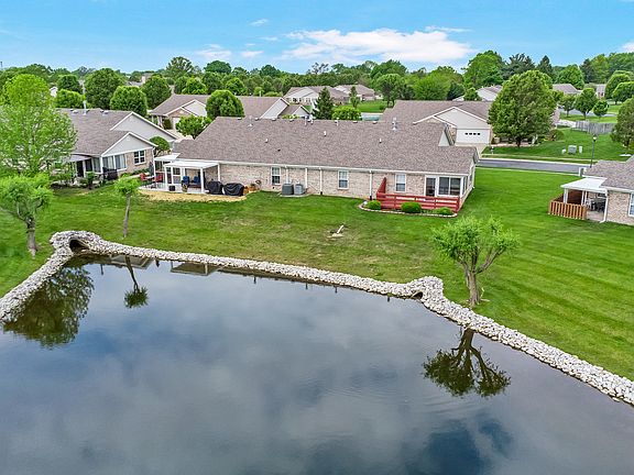 Sit back and let the HOA maintain your lawncare and snow removal at this lovely 2 bedroom, 2 bathroom paired patio home in a 55+ community in Franklin Township! Explore this home via interactive 3D home tour, complete with floor plans, video & more. An open concept great room/dining room with a gas log fireplace and 9' beamed ceilings welcomes you into the home. Relax year-round in any weather with an all-season sun room, glass-enclosed patio, covered front porch, and wood deck overlooking the community pond! Both bedrooms feature walk-in closets, while the primary bedroom also includes a private full bathroom. Finished 2-car garage offers additional storage space. All this and more in one of Franklin Township's most desirable 55+ neighborhoods!