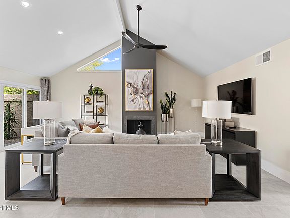 Fantastic remodel on this 3 bed 3 full bath single level great room plan in one of the best locations in town. Completely re-imagined plan has been opened up so the kitchen overlooks the large greatroom w/vaulted beam ceiling & floor to ceiling fireplace. New white kitchen cabinets w/custom hardware, huge porcelain tile floors, quartz counters, SS appliances, stone backsplash, tons of LED can lights, custom light fixtures, ceiling fans, & shiplap walls highlight the main area. Baths features tile shower surrounds, glass enclosures, black plumbing fixtures, black & white cabinets, marble counters, & tall baseboards. Large pocket doors access great rear yard area large enough for outdoor seating or a furry friend. New HVAC & roof replaced in 2021 so nothing to do but move in and enjoy!