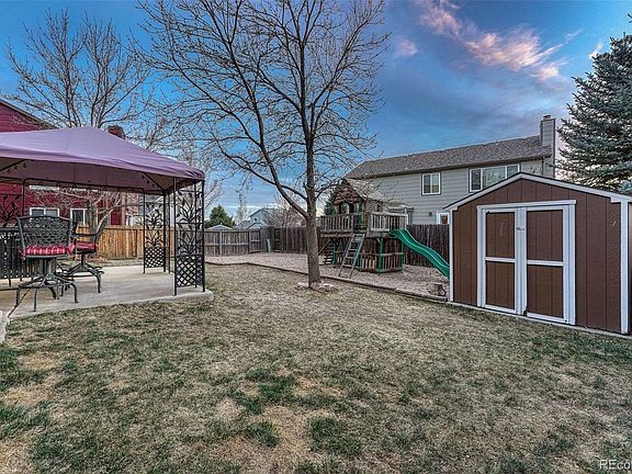 Excellent D20, 2-story home located in the well-established neighborhood of Fairfax. No HOA. Covered front porch. Hardwood floors thru the Entry and Powder Bathroom. The Powder Bathroom includes a vanity with a tile countertop and framed mirror. The formal Living Room offers neutral carpet and a bay window. It flows into the formal Dining Room with a lighted ceiling fan and Kitchen access. The Kitchen features tile-look floors, a counter bar, pantry, and cabinets with Corian countertops. Appliances include a black smooth top range oven, stainless steel microwave, dishwasher, and side-by-side refrigerator. There is a Dining Nook off the Kitchen with a slider to the backyard. The Kitchen and Nook open into the Family Rm that includes neutral carpet, a wall of windows, a lighted ceiling fan, a wood-burning fireplace (w/capped gas line) with brick surround, raised hearth, and mantle, and garage access. The upper level offers 4BRs and 2 Bathrooms. The Primary Bedroom features neutral carpet, a lighted ceiling fan, a closet, and an attached 5-piece bathroom. A barn door opens to the Primary Bathroom which offers a dual sink vanity with tile countertop, framed mirror, medicine cabinet, soaking tub, and separate shower. The upper-level Hall Bathroom has vinyl floors, a vanity with tile countertop, framed mirror, and tub/shower. The Finished Basement hosts an under-stair children's nook, a Rec Rm with wet bar, a Bedroom, Bathroom, and Laundry Rm with gas and electric hookups. Central air, humidifier, and newer water heater. The fenced backyard has auto sprinklers, a concrete patio with a metal pergola, a playset, and a storage shed for tools and toys. Conveniently located to shops, restaurants, healthcare, entertainment, and easy access to USAFA, Peterson Air Force Base, and award-winning Academy D-20 schools.
