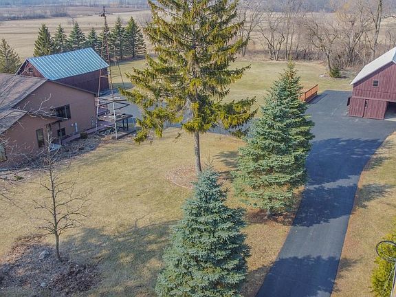 Privacy & country living! Open dining & living room area w/high ceilings, laundry/mudroom on 1st floor, well-appointed kitchen- tons of cabinets! Huge rooms w/big sunny windows. Primary bedroom has abundant closets & large bathroom. Lower finished space includes-workshop 12x10, sunroom 28x7, bonus rm & rec rm. Heated floors in rec rm, sun rm, 2 bdrms. Big deck plus additional 14x22 free standing deck-could be used for a pool or RV area. Blacktopped driveway. One building has a large gathering area upstairs that would be a perfect bar, hang out area, art studio or whatever your heart desires! At least two vehicles will fit comfortably in garage w/room for boats, atvs, etc. 2 Outbuildings built in 1910- 24x42 (1008sqft) 24x46 (1104sqft) Both have usable upper areas.