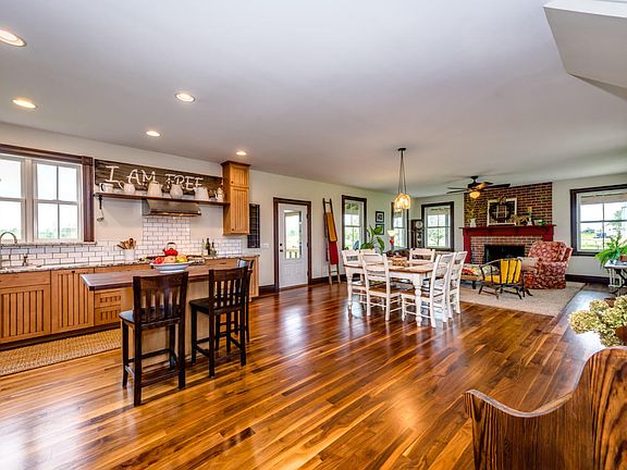 Unique country property built into a large hillside in 2010 on 14.46 rolling acres! Custom home w/ 42 ft. great room w/ glowing walnut floors, raised hearth fireplace, 9 ft. ceilings, spacious open dining w/ access to covered porch w/ an expansive view of grounds, pasture, riding arena & wild life. Open stairway overlooks an impressive open kitchen w/ stone countertops, center island, custom cabinets, stainless steel appliances, walk-in pantry & subway tile backsplash. 1st floor master w/ customprivate bath & walk-in closet PLUS main floor. guest quarters w/ kitchenette & barrier-free bathroom! 23 ft. upper level bedroom w/ 1/2 bath. Walkout basement is largely finished w/ high ceiling, 39 ft. rec room, rough plumbed bath. Horse-lover's delight w/ fenced pastures, 48 ft. pole barn, corral & room to ride. This is a quality property with many extras inside and out. MUST SEE INSIDE!