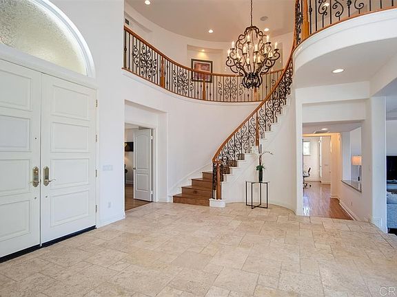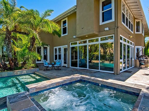 Fantastic opportunity to live in the Ranch and priced $350,000 under recent sales. Large estate home, ready to make it your own. Quiet culdesac street with only 5 homes. Guest quarters with a separate entrance, balcony and kitchen. Open floor plan with lots of windows and sliding doors to live both inside and outside. Sparkling pool and spa with firepit and bbq. Easy walk to OPE and views of LCC High sports fields. No homes behind for great privacy! First floor bedroom and bath currently being used as an office. Sparkling pool and spa with water features, fire pit and slate patio. Entertaining style home that flows easily inside to the outdoors. Solar panels for reduced energy bill. Large master suite with huge walk in closet and luxury bathroom. This space with sitting area and fireplace creates an intimate space to relax. Easy walk to all 3 top rated schools including OPE and La Costa Canyon High School. Solar panels are leased. Great value in the Ranch of Carlsbad.