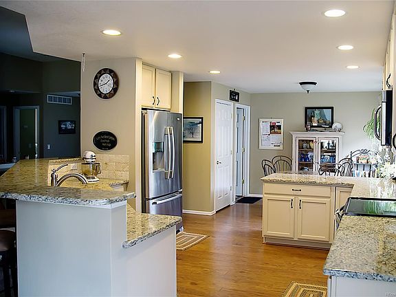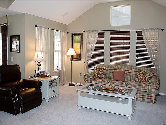 As soon as you walk in this amazing patio home you will be ready to call it your own! Heritage at Eagle bend is a 45+ gated community with wonderful amenities including Heritage Eagle Bend Golf Club, Rec Center with pool & fitness center, parks, trails, & easy access to E-470. The kitchen features granite counter tops with a custom back splash, along with upgraded stainless steel appliances. The family room has vaulted ceilings, large windows and a cozy fireplace. The master is well appointed opening up to a large bathroom with a walk in shower, complete with a bench, huge walk in closet, dual sinks with quartz counter tops and a separate toilet area. Well appointed laundry room with built in shelving. Garage has outlet to charge golf cart! The basement is a crafters dream, with walls of pegboards. This area could also be used as a second family room. This unit has the largest covered porch (built in gas line for BBQ) to sit back and revel in Colorado's beautiful weather!
