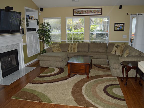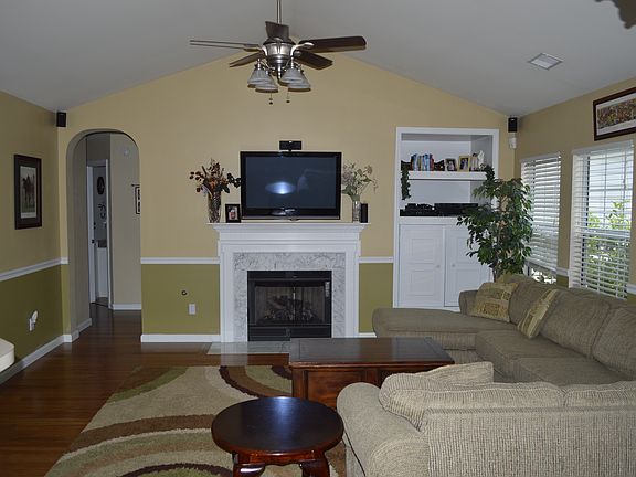 Beautiful home in highly sought after Grand Oaks Plantation! This three bedroom, two bath home provides the perfect set-up for a family or first time home buyers! The living room features a gas burning fireplace surrounded by marble and built-in shelving. Living room is pre-wired for surround sound and a wall mounted big screen TV. Kitchens and bathrooms were updated with beautiful ceramic tile floors, and the living room and hallway were updated with gorgeous bamboo hardwood floors. The master bedroom has a bay window that overlooks the pond. The master bathroom features his and her separate sinks with a full garden size tub, stand alone shower, and a walk in closet. One of the spare bedrooms has a custom built-in shelf and desk great for an in-home office or study. A large screened in porch overlooks the back yard with enclosed 4 ft fence to allow for children or pets to play. The backyard features 2 palmetto trees, a custom stone patio and a scenic view of the pond. (Great for entertaining or a barbecue). This home is move-in ready! HVAC system is under a yearly maintenance contract that is transferrable, home is under a termite and pest warranty that is also transferrable. Home is within walking distance to the neighborhood pool.