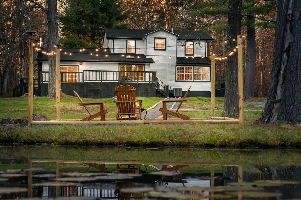 Stone fireplacePrivate pondsHigh-end finishesFirst-floor primary suiteUnforgettable sunset viewsModern upgradesExpansive back deck