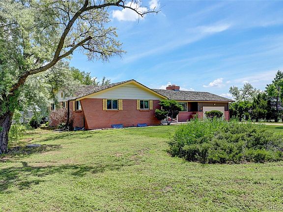 RARE OPPORTUNITY -HISTORIC RANCH EGG LOCATION! Perfect country setting close to everything you want! Ranch style house sits on almost an acre plus almost 3 more acres! Quiet rural lifestyle minutes away from Children's Hospital, shopping, restaurants, new King Soopers complex. Minutes to I25 with Costco, Top golf, Home Depot, shopping mall! House has great bones ready for your remodeling. Living room with brick fireplace. Spacious kitchen with lots of cabinets adjoins oversized sun room for extra living space. Handy hall bath. Three good sized bedrooms on the main floor with 1/2 bath off primary bedroom. Shady back patio. 9000+square foot poultry barn with power, oversized shed plus large shop right outside your back door! HORSES OK! Park heavy equipment/great space for landscape contractor/rezone for commercial use! Unlimited parking for as many toys/equipment/RV's as you want!