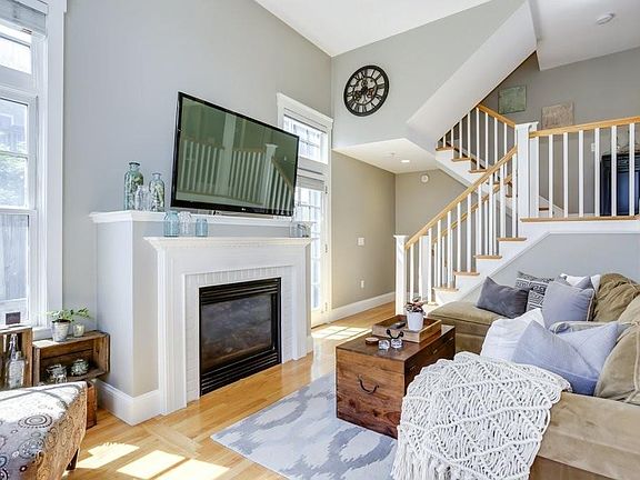 RARELY AVAILABLE EAST SIDE TOWNHOME WITH 2 DEEDED PARKING SPOTS AND ROOF DECK! DRAMATIC FLOOR PLAN OFFERS TWO STORY LIVING AREA WITH CUSTOM METROPOLITAN CABINETS, STAINLESS STEEL APPLIANCES, QUARTZ COUNTERS AND FARMERS SINK. DESIGNATED DINING AREA, LIVING ROOM WITH SOARING CEILINGS, GAS FIREPLACE AND OVERSIZED WINDOWS WITH CUSTOM WINDOW TREATMENTS. TWO KING SIZE MASTER SUITES, FAMILY ROOM, ROOF DECK WITH DIRECT WATER VIEWS, PATIO AND GREEN SPACE. ADDITIONAL FEATURES INCLUDE HARDWOOD FLOORS, LAUNDRY, CENTRAL AIR AND TWO PARKING SPOTS INCLUDING 1 GARAGE AND 1 OUTSIDE. THIS FRONT FACING NANTUCKET STYLE HOME IS LOCATED IN SOUTH BOSTONS MOST SOUGHT AFTER WATERFRONT LOCATION.