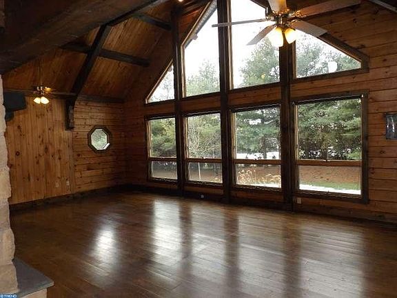 Spectacular log home on picturesque four acres in Franconia township. If you're a nature lover or animal lover, look no further. This home is situated on a gorgeous fenced lot (yes...all 4 acres are fenced!), with amazing panoramic views, heated inground pool, shade cabana, two 12x28 out-buildings, huge garden, and a built-in wood-fired oven and fire pit!! When you enter the two story great room with stone fireplace, and a wall of windows, you will know this is "the one." The floor plan is perfect for entertaining and everyday living. The country kitchen offers a huge center island, corian counters, an abundance of cabinets, updated appliances (including a wine fridge), and a dining room. From the kitchen, you can exit to the 25 x 11 enclosed porch which leads to a 25 x 11 open deck (maintenance free) - with steps leading down to the pool area. The main floor of this home also features a master bedroom with private bathroom, two additional bedrooms and hall bathroom. A spiral stairway takes you to a loft above the kitchen (perfect for an office or a 4th bedroom) that has doors that lead you to a 25 x 11 open deck (with more amazing views)! The walk-out finished basement has two entrances (one by the garage, and one by the pool), and the possibilities are endless (large family room with woodburning stove, billiards area, exercise room, full bathroom, and utility/laundry room with garage entry). Close to everything - schools, shopping, major routes, Indian Valley YMCA, and so much more!! You'll never have to leave home...this property has it all!