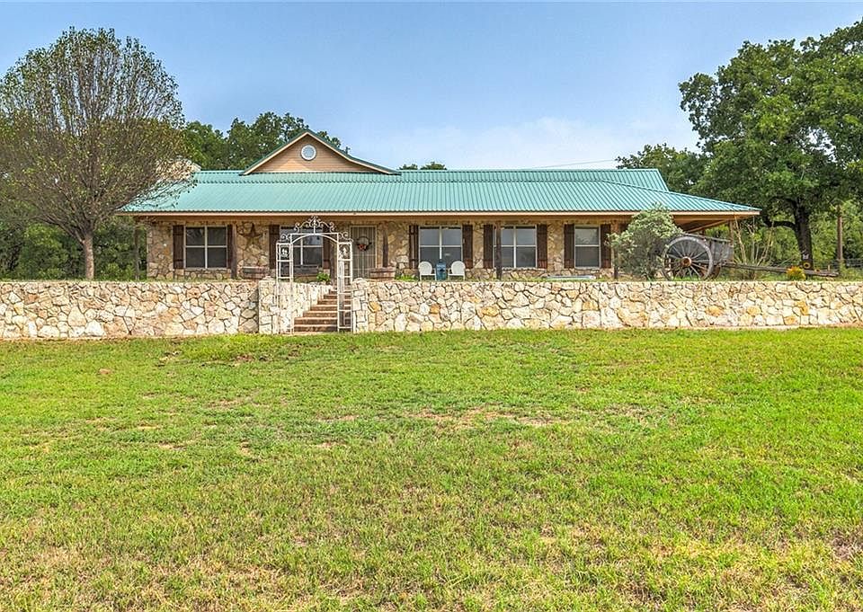 Wonderful country home on over 7 acres! This home is stone construction with a long lasting metal roof! Huge stone fireplace is the focal point of the large living area. Gas cook top in the kitchen for the chef in the family. Bring all of the animals! This home sits on over 7 acres!! Barn has 2 stalls, tack room, and covered parking. There are also dog kennels. A tank on the property makes watering maintenance free for large animals. Come see this property! The country awaits you!