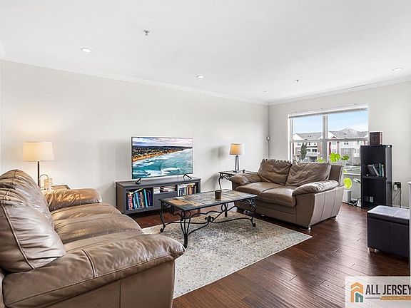 Welcome to this light-filled three-level Clipper model, the largest layout in Harbortown Crossings, offering 4 bedrooms, 3.5 baths, and 2,045 sq. ft. of living space. This rare townhome features full water views from the living room, terrace, primary suite, 4th bedroom, and landingan amenity enjoyed by very few units in the community. The main level boasts a bright living and dining room with crown molding, recessed lighting on dimmers, engineered wood flooring, sound system, and terrace access. An open-concept kitchen flows into the great room with engineered wood floors and recessed lighting on dimmers. A stylish powder room and large pantry complete this level. Upstairs, the primary suite offers a WIC, recessed lighting on dimmers, ceiling fan, sound system, and a bath with chair rail tile work and shower stall with floor to ceiling tiles, along with two additional bedrooms, a hall tub bath, and a laundry room with closet. The lower level provides a private bedroom with full tile bath, recessed lighting on dimmers, crown molding, and access to the two-car garage with openers. Recent updates include a new furnace and hot water heater (2022). Enjoy community amenities such as a shuttle to Woodbridge Train Station (express stop) plus the Perth Amboy Harborside Marina featuring two fishing piers and a paved waterfront walkway and beach access.