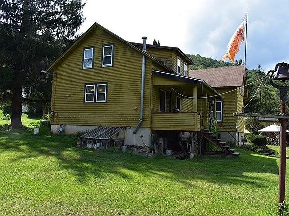 This sprawling 2,700 square foot home/camp/lodge sits on approximately one acre, along the Allegany river. The home features six bedrooms, three baths, eat in kitchen, formal dinning room, first floor bedroom and bath, full walkout basement, newer foundation, recently updated boiler, 200 AMP service, public water/ sewer and a back up wood burning stove that will heat the entire house. The beautiful hand cut stone fireplace in the basement is a place to gather and a must see. The exterior has wood siding a shingled roof and features two porches with the back porch over looking the Allegany River. There are also several out buildings for storage, including a barn and a detached one car garage. This property would be perfect for a large family or a group of outdoor enthusiasts.
