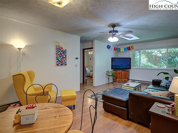 Surprisingly spacious and bright ranch style home, very convenient to both Boone and Blowing Rock, NC. Home is currently used as a 4 bedroom, and is RENTED THROUGH July 31, 2023. The driveway area has been recently graded and expanded to accommodate 4 cars, including the car port. From the front porch you enter to a sizeable living room with large windows, vaulted ceilings and a skylight. The long kitchen has plenty of storage and counter space. The family room is currently used as a 4th bedroom and has its own bath and a sliding door entry to the back deck. All bedrooms are fairly spacious. There is a private back yard and low deck, with room for a firepit or garden. No significant upcoming expenses: owners installed new HVAC and ductwork in 2015, new dryer 2021, new front gutters 2021, new refrigerator 2019, new water heater 2016. Roof estimated to be 2006 and is in good shape. Current rental rate is $1,585 and can be significantly higher in next lease cycle. Going rate is $600+ per bedroom, and proximity to ASU means it will always be in demand. Purchase as an investment or use as a primary home. See 3D tour. 24 hour notice required.