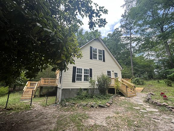 This is a nature lover's dream come true, as it is surrounded by trees. Super private, with adequate space inside and out for everyone. This property, which is almost 2 acres in size, is lush with greenery.