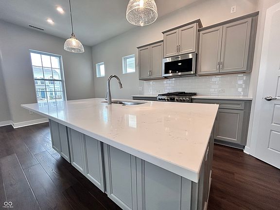 *Sample home shown. Actual home features may vary. Welcome to your beautiful and spacious new home in Gramercy West! This Startex home plan with delight with 3 bedrooms, 2.5 baths and a finished two car alley load garage with 10' ceilings. The vibrant yet cozy main level with abundance of beautiful quartz counterspace throughout and a large quartz topped kitchen island to gather around family and friends. This home features trendy kitchen cabinets, luxury laminate hardwood flooring in main area, stainless steel appliances with gas range, refreshing tiled walk-in shower, spacious Owner's Retreat with a large walk-in closet, balcony out of Owner's Retreat and more. Our homes feature 10'and 9' ceilings. Community pool and a pool house are our top amenities, and you will be within the walking distance to the Monon Trail, the Palladium, and Arts District, plus all Downtown Carmel has to offer.