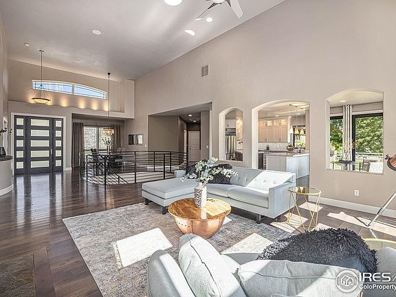 Assumable Mortgage Opportunity - Welcome to Eagle Ranch Estates, where modern luxury meets natural beauty in this immaculate custom ranch home. Recently upgraded with a brand-new roof and deck, this home is ready for its next owner to enjoy the finest in comfort and style. Situated on a serene 0.7-acre lot, the property backs up to approximately 250 acres of HOA-owned open space, offering unmatched privacy and access to nature.Inside, you're greeted by an open floor plan filled with natural light from large windows and soaring 22-foot ceilings. Exotic maple wood floors lead you to the heart of the home-a newly renovated gourmet kitchen. Equipped with stainless steel appliances, marble countertops, a 5-burner gas cooktop, wine cooler, instant hot water dispenser, and a walk-in pantry, it's perfect for both daily living and entertaining.The master suite is a luxurious retreat, featuring its own fireplace and a spa-like 5-piece bath with heated floors, a whirlpool tub, and a custom walk-in closet. Step out onto the new deck to enjoy the professionally landscaped yard, which boasts over 40 mature trees, vibrant flowers, and a serene water feature that enhances the peaceful backyard oasis.The fully finished walkout basement offers a game room, wet bar, AV room, guest suite, and ample bonus space-perfect for gatherings or relaxation.Additional amenities include a whole-house water filtration system, a tankless water heater for endless hot water, and a whole-house fan for added comfort. The oversized four-car garage and circular driveway, accented by lush landscaping, complete this exceptional home.With easy access to Fossil Creek Reservoir and I-25, this home offers the ultimate in Colorado living.