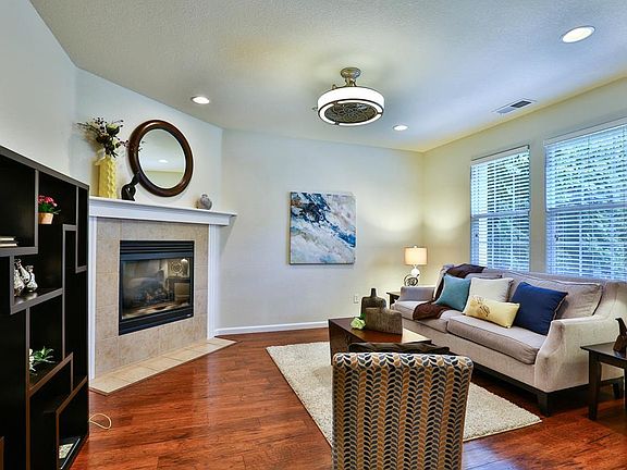 BEAUTIFUL HOME in Quiet Valley Oak Community. Open concept with high ceilings and laminate flooring. Spacious living room with, fireplace, ceiling fan and natural light. Large kitchen with ample cabinetry, tile counters and stainless-steel appliances, including gas stove, microwave, dishwasher and refrigerator. Generous master suite with abundant light and room for sitting area. Master bath equipped with dual sinks, ample cabinetry and counter space, oversized tub, separate shower, and walk-in closet with organizers. Upstairs loft/office area with built-in desk and cabinets. Roomy spare bedrooms! Spare bathrooms accented with tile counters, floors, shower/tub enclosures, and glass doors. 2nd floor laundry room with lots of storage. Enjoy BBQing private back patio area. Addl features: 2-car garage, central heat & A/C, ceiling fans. Low HOA dues. Club House, green belt, pool/spa & outdoor kitchen/BBQ. Close to shopping, schools, running/cycling trails, golfing & Gilroy Gardens.