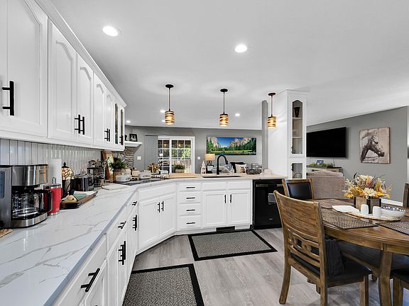 Cozy gas fireplaceNew workshopCovered patio areaCovered deckQuartz countertopsNew roofOpen floor plan