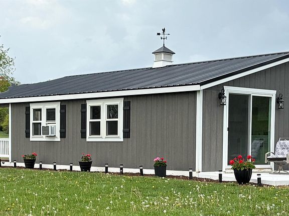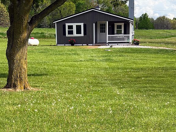 1-ACRE-Like new built in 2022 This home features a covered front porch on one acre of land! One bedroom plus a den this home is affordable and instantly appealing. All appliances and many furnishings included if buyer wishes to have a turn-key home! Ample spray-foam insulation keeps utility costs low at $40 in the winter and $70 on the summer for HVAC. Rural Location conveniently located near Lake George and 80/90 with I-69 interchange
