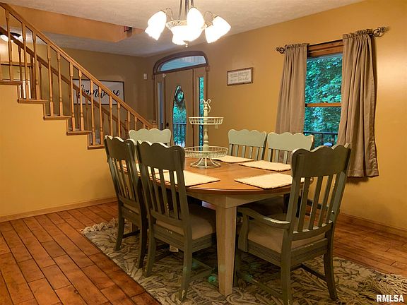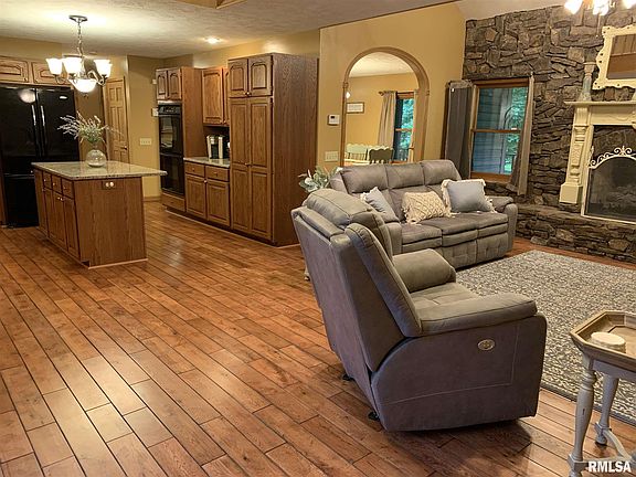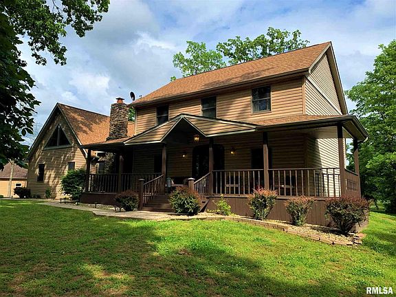 YOUR COUNTRY DREAM HOUSE AWAITS! This incredible 5-bedroom 3-bath home sits on a quiet 5-acre property just south of the DuQuoin State Fairgrounds. The great room features soaring ceilings and a beautiful natural stone fireplace. The main floor also features a kitchen with granite countertops, a large island, and plenty of cabinet space, a dining room, 2 bedrooms, and a full bath. Upstairs, you'll find double master suites with spacious closets and beautiful bathrooms. The primary master bathroom includes a custom tile shower and luxurious soaking tub. Cross the elevated walkway from the master bedroom into a private office or 5th bedroom. The finished basement has additional finished space for a family or rec room, bar area, play room, plus a laundry area. The detached oversize garage (built in 2010) is heated and cooled and features a 1-bedroom apartment complete with a full bath, kitchen and living space. New roof and gutters in 2019. House is setup for ADT security.