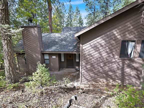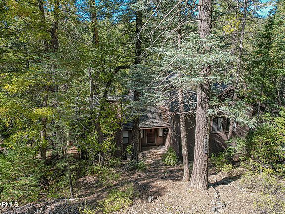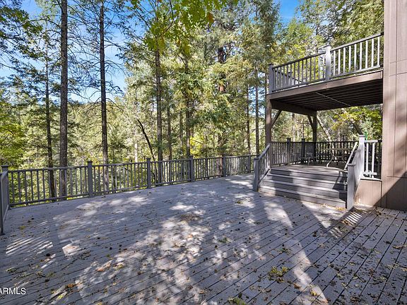 Nestled 90 Minutes North of Loop 101/Interstate 17 in the tall cool pines of the Prescott National Forest, situated on just under an Acre at an elevationof 6940'. Property amongst tall Ponderosa, Spruce, Aspen and Gambel Oak in a gated community. Tri Level home with wood burning fireplace in living (mid level);Open island kitchen to dining area with guest bath and garage access (lower); and 3 bedrooms and two bathrooms (upper). Trex decking on expansive open and covered deck overlooking tall pines forest (no homes in site). Priced right for updating flooring, cabinets/counters and light fixtures. Adjoining 0.75 Acre Lot 31 (Parcel 205-26-031) can be included for + $50k Seller to add hauled water tank in escrow.