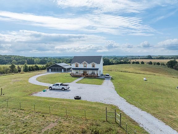 Here is a rare opportunity for a new construction home on 36.25 acres. This charming home offers today's modern amenities with yesterday's peaceful living. With six bedrooms and 4 living rooms, the possibilities are truly endless. As you pull up the gravel drive, you are able to take in the Ozark Hills that provide a beautiful backdrop behind the home. The rustic trimmed gables and the large front porch welcome you inside. It's a great place to get in from the rain, or to sit and take in the view and have a cup of coffee. Stepping inside there is a foyer area with tall wainscotting that provides a charming entryway. A beautiful Stone fireplace and large windows make the living room a cozy place to relax. The kitchen, with its concrete counter tops and wood cabinets, and the open layout to the living room, make it a great place to entertain guests. The main floor has a nice sized pantry and laundry room, a half bath, and the primary bedroom suite. The spacious primary bedroom has a walk-in shower, dual vanities and a walk-in closet. On the second floor you will find 4 bedrooms, a full bathroom and a second living room. The views of surrounding farmland from the upstairs windows are also spectacular. This home has a full basement with another bedroom, a third living room/media or workout room, and plumbing stubbed for a potential fourth bathroom that is ready to be made into whatever you desire. Also on the property is a 54x40 barn that was just completed. The barn has full concrete floors and electricity! The acreage offers 3 ponds and has previously been used for cattle. This amount of land with new construction homes is in limited supply. Come take a look and see if this could be the place you call home.