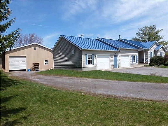 Well cared for Ranch in beautiful country setting w/ large home business/workshop on one acre. Desired open floor plan living space, three beds including Master w/ walk in closet and on suite bath. Tastefully tiled entry, kitchen, carpeted living & bedrooms. Professionally built outbuilding, workshop or home business building (36' x 48') is impressive ~steel built, fully insulated w/ half bath, office & additional room. Updates include metal roof (13'), triple pane windows, 2.5 car attached garage w/ storage, vinyl siding, generator ready, 3 wood stoves & shed.