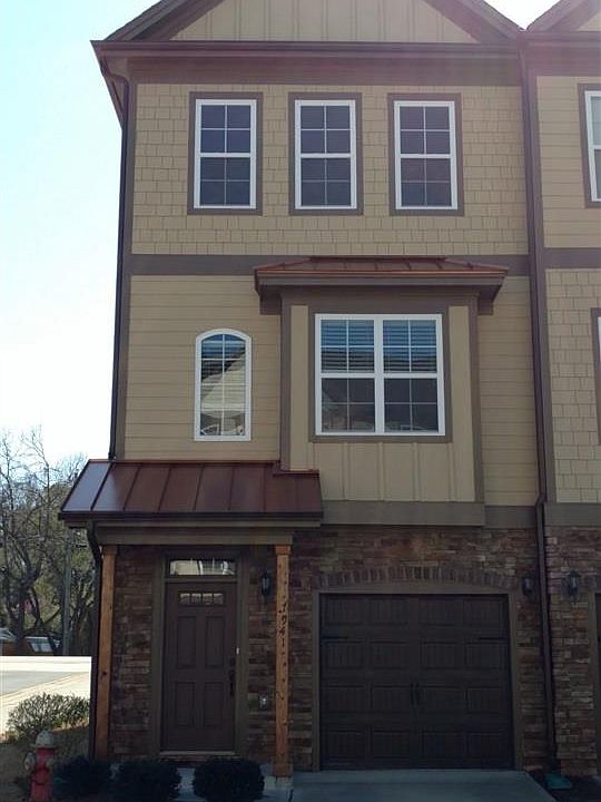 3 Floors: 1st - Entryway, 1 bedroom w/attached full bathroom, laundry (Includes full size washer/dryer), garage access (Single car). 2nd - Kitchen, dining area, family room, access to a small porch, 1/2 bath. 3rd - 2 bedrooms w/attached full bathrooms (1 is master w/master bathroom and walk in closet), access to pull down attic. Kitchen: All stainless steel appliances (Electric stove top), granite counter tops. Easy access from house to mailbox as well as entrance/exit from neighborhood. Natural gas heat.