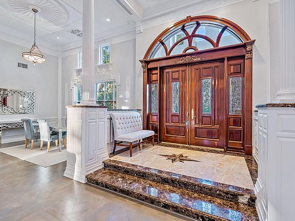 A move-in ready ''mini-mansion'' situated on the 18th fairway. This exquisite home boasts many unique fixtures and finishes including 17-ft ceilings. A beautifully renovated kitchen includes coffered ceilings, custom wood cabinets, double ovens, warming drawer, gas cooktop and marble countertops that open to an adjoining den. Gorgeous parquet floors refinished with a grey tone in the great room accentuate 3 sets of French doors which open to the resort-style, patio equipped with pool, gas fire pit and summer kitchen. Both the master suite and cabana guest suite open onto the pool deck. The automated saltwater pool & spa overlook a tropical outdoor oasis. Full house protection ensues with a Generac generator and impact windows. Club membership not required. Soaring palms and professionally landscaped lawns cocoon the outdoor space and offer beautiful views from every room in the home. Just under 1/2 acre, the property is surrounded by lush, mature landscaping that affords complete privacy yet backs on to the fairway of the 18th hole.