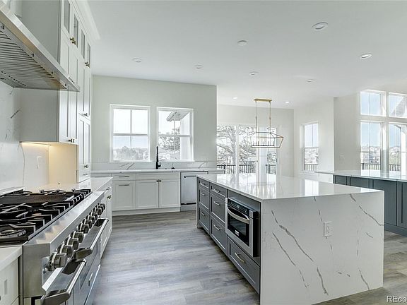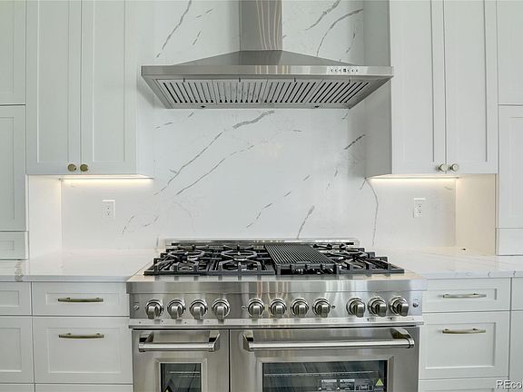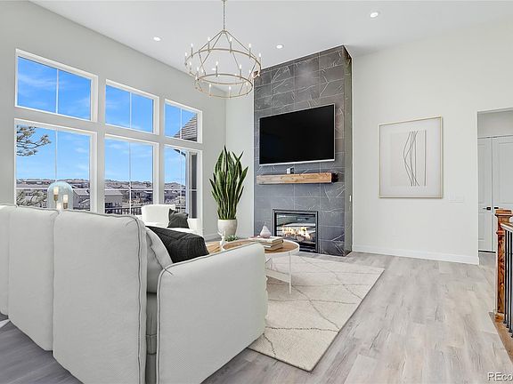 NEW CONSTRUCTION ON ESTATE LOT IN COVETED CHERRY CREEK SCHOOL DISTRICT! Situated on a .67 acre homesite & backing to permanent open space, this 5 bedroom, 4 bathroom ranch-style farmhouse is everything you've been dreaming of. Upon entering, the central great room features soaring 14' ceilings w large windows & tons of natural light. A gas fireplace w modern marble surround & a chic chandelier make it feel cozy yet grand. The kitchen is a dream w stacked white cabinetry & a double island w waterfall quartz countertop & backsplash. A 48" gas ZLine range & 60" Whirpool fridge / freezer combo add additional high-end touches. The main floor primary suite offers outdoor access to a private covered deck; the luxurious primary bathroom features Classentino Marble polished floors, a double sink , a gorgeous frameless shower & freestanding tub. An additional secondary bedroom on the main floor offers extra convenience. The lower level includes 10' ceilings, walkout access, a wet bar & two finished storage areas. Three large secondary bedrooms & two bathrooms ensure there is plenty of room for everyone! This stunning new home and large yard are ready for your perfect touches.