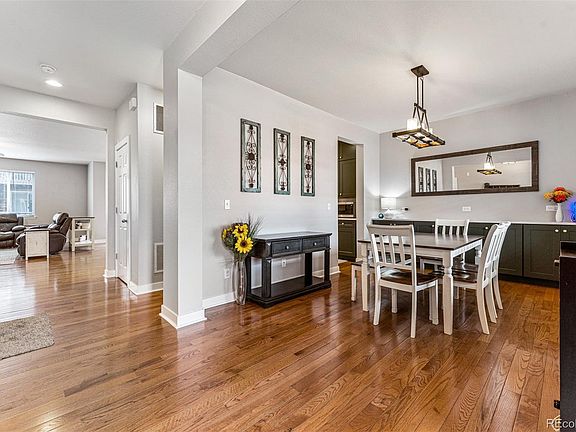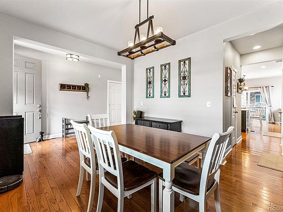 Nestled in a serene neighborhood, this exceptional home offers a host of top interior features. The fully renovated kitchen is a culinary delight, boasting custom cabinets, exquisite quartz countertops, and the unique convenience of not one, but three pantries, ensuring ample storage for all your needs. The main floor has been tastefully updated, featuring an elegant powder room and a cozy fireplace, creating a welcoming atmosphere for family and guests alike. New light fixtures throughout the home add a touch of contemporary elegance. Descend to the fully finished basement, where entertainment takes center stage. A dedicated theater room promises movie nights to remember, and an extra bedroom provides flexibility and space for your family's needs. For pet lovers, a built-in dog door offers easy backyard access for your furry friends. Outside, the home showcases excellent curb appeal, with fresh exterior paint completed in 2022 and a durable stone tile roof. Enjoy the pleasant Southern exposure and the meticulously landscaped front and back yards. Recent enhancements include new shrubs, reed grass, and trees, creating a picturesque outdoor space. Relax on the wrap-around back patio, perfect for outdoor dining and gatherings, or spend leisurely afternoons on the covered front porch, complete with a charming swing for those peaceful moments. This home's location is truly exceptional, offering a short walk to the Cobblestone Ranch Community Pool and Playground, ideal for family fun. Additionally, the brand-new Cobblestone Ranch Community Park on Castle Oaks Dr beckons for outdoor adventure. This home is equidistant from the bustling shopping and dining destinations of both Parker and Castle Rock. Nature enthusiasts will appreciate the proximity to the Cherry Creek Trail and Castlewood Canyon, where biking, and hiking trails await, with opportunities to spot deer and turkeys along the way.