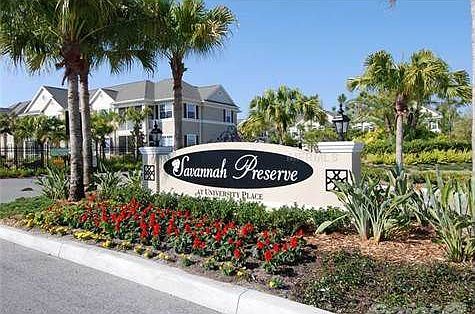 This 1789 sq.ft. under air, second floor, 2/2/den carriage home is the only brand new unit left within the community that has never been occupied. Private preserve views create serenity on your screened-in lanai that opens up on three sides and allows the feel and sounds of nature to blend harmoniously within your living space. Finishing touches such as crown molding, 18" tile flooring, granite countertops, stainless appliances with european hood accentuate this well designed, award winning, floorplan. While the wrap around desk off the kitchen and enormous storage closets are impressive, it's the ability to add a private elevator or easily transition the den into a third bedroom, that sets it apart from all others. Sound barriers, all concrete construction, double paned windows and 10" of concrete between the floors, the most sought after University Park address and no CDD fees truly make this carriage home the best value in the best location. Brokered And Advertised By: PALM OASIS REALTY AND MGMT INC Listing Agent: TARA BOLESTA