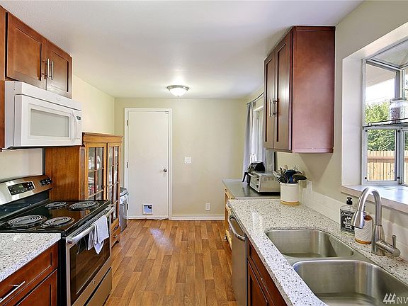 Charming, updated rambler with all new windows, vinyl plank flooring, and carpet. Kitchen newerwith quartz countertops, cabinets, & stainless appliances. Features include updated larger bathroom, spacious livingroom with wood fireplace, gas furnace, gas hot water, newer roof and fully fenced front and back yards. Wonderfuloutdoor living spaces with professionally manicured trees in a quiet neighborhood close to parks, restaurants, &shopping.