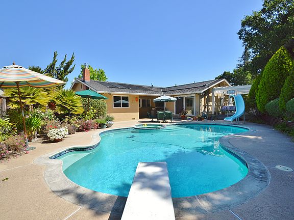 Charming single story home on a quiet court, in the desirable Stoneridge neighborhood. Enjoy a Spa like back yard, with a nice solar heated pool&spa, mature trees and great privacy. Easy living in this 1677 sq..ft home, on a 9530 sq.ft lot. There are 3 bedrooms and 2 bathrooms , upgraded with style. Walk to award winning schools, parks, Stoneridge Mall and BART. Quick access to both 580 and 680 .