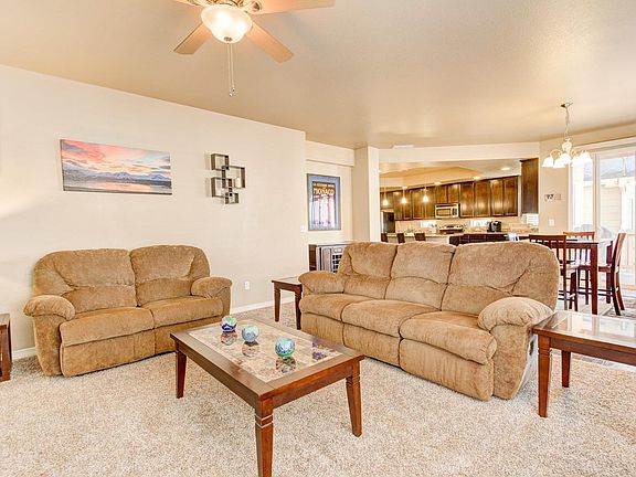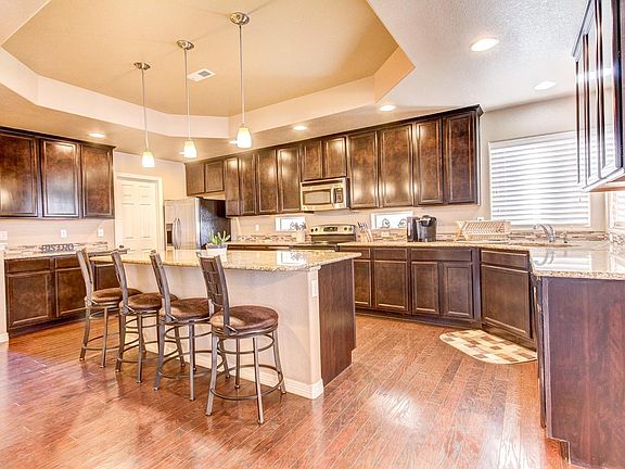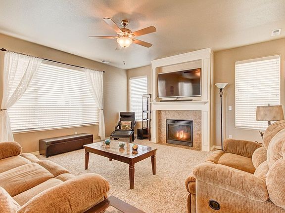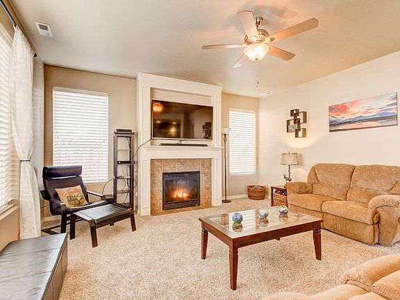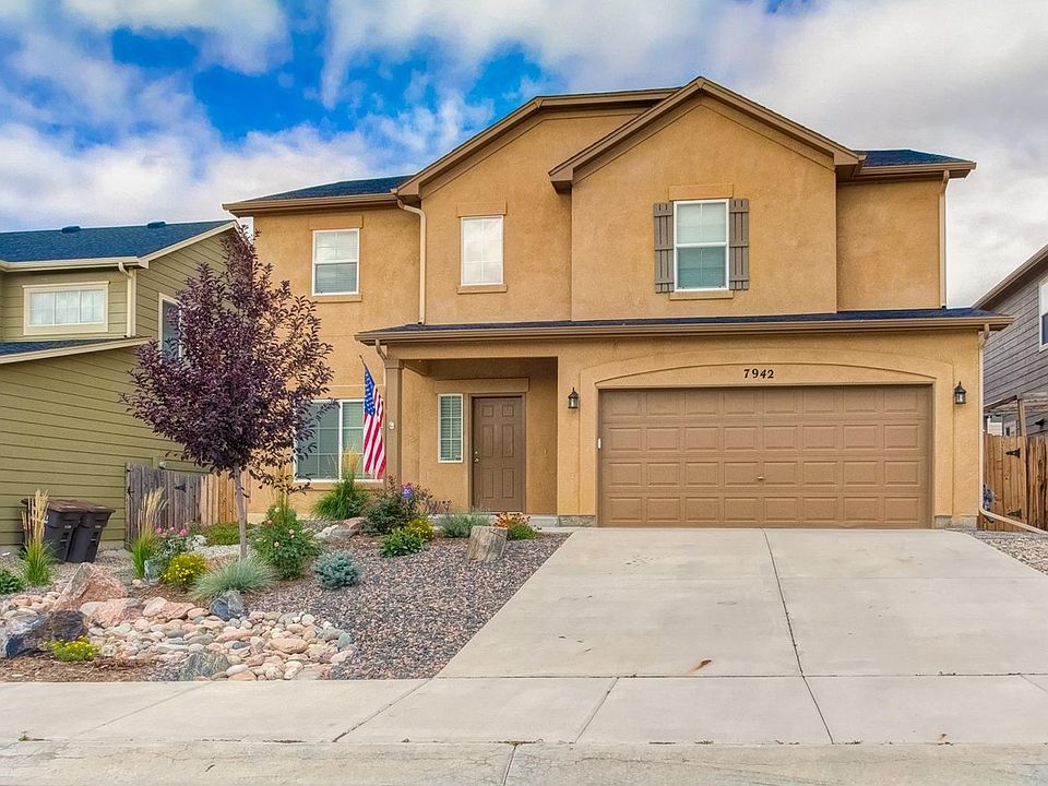 Stunning 5-bedroom home in Mesa Ridge offering a beautifully designed open floor plan, soaring vaulted entry, rich hardwood floors, exquisite chefs kitchen with slab granite and tremendous island/counter bar, stainless-steel appliances, impressive open great room with warm gas fireplace, master retreat with luxurious 5-piece bath and huge walk-in closet, main level bedroom and office, beautiful low-maintenance front landscaping, a pet-friendly fenced yard, and an excellent location near military bases, schools, parks, and shopping. An outstanding level of finishes and additional features are found throughout this picture-perfect home including central air conditioning, ceiling fans throughout the home, tiled upper level laundry, attached 2-car garage, and a low-maintenance stucco exterior. Offering comfort and luxury, this unrivaled home is not to be missed!